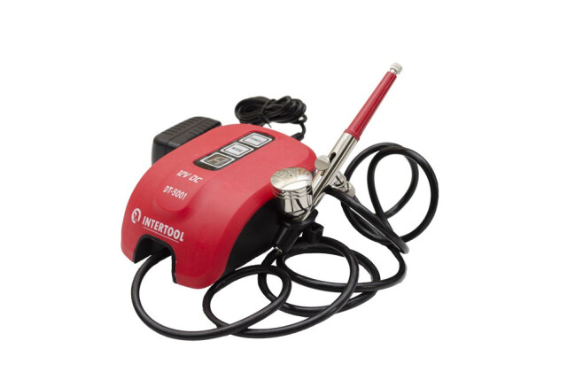 Електричний аерограф DT-5001 використовується художниками, ілюстраторами або ретушерами для малювання складних малюнків, візерунків, дрібної розпису і т.д. Купити аерограф DT-5001 можна і для професійного нанесення макіяжу, дизайну нігтів або декорації тортів. Діаметр форсунки аерографа 0,3 мм, діапазон робочого тиску від 0 до 2 бар. Споживана потужність 12 Вт. Прилад комплектується адаптером 12 В