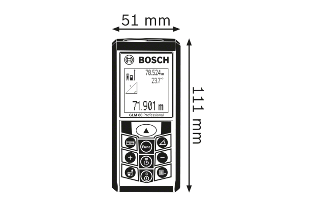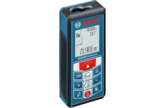 Лазерний далекомір Bosch GLM 80 - це професійний інструмент, який призначений для вимірювання висоти, відстані і вертикального кута нахилу. Вбудований датчик кута дозволяє обчислювати висоту за один вимір. Bosch GLM 80 являє собою мультифункціональний пристрій, успішно поєднує в собі можливості далекоміра і уклономера і дозволять Вам працювати ще швидше, комфортніше і точніше.