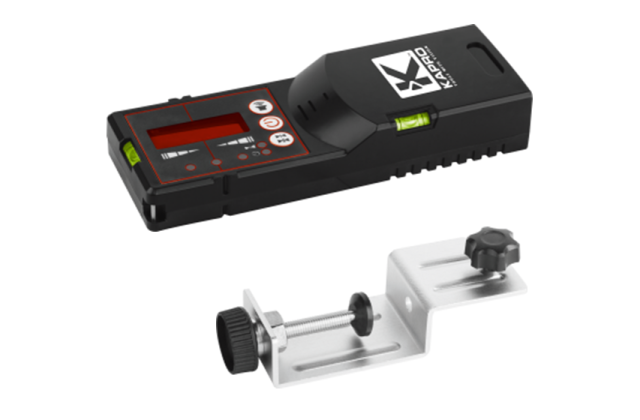 Детектор лазерного променя використовується, якщо промінь світла погано видно, наприклад, на відкритому повітрі або в світлому приміщенні. Якщо лазерний рівень встановлений на високій опорі, встановіть детектор лазерного променя на жердині.