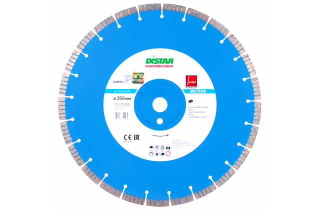 Продукция LP 40H 1A1 RSS / C3-W 350 х 3,2 / 2,2 х 12 х 25,4-25 F4 «Ди-Стар» Meteor представляет собой профессиональный круг для нарезания армобетона и других видов бетона без применения охлаждения.