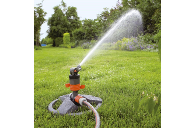 С помощью дождевателя GARDENA Comfort Turbo-Drive Вы можете спокойно поливать свой газон. Он изготовлен из прочного пластика и поэтому очень малошумный. Дождеватель снабжен запатентованным турбомеханизмов с защитой от загрязнений. Он работает чрезвычайно тихо и обеспечивает равномерный полив за счет двухзонного принципа действия и наличия дефлектора специальной формы. С помощью специальным образом расположенных вращающихся регуляторов можно легко и точно выбрать сектор полива в диапазоне от 20 ° до 360 °. Такие регуляторы позволяют в любой момент времени узнать выбранный сектор. Дальность полива регулируется с помощью большого и удобного регулятора и может варьироваться от 5 до 12 метров. Возможен полив участка площадью от 75 до 450 м2. Быстросъемный фильтр тонкой очистки обеспечивает защиту дождевателя от загрязнений. Фильтр легко снимается и чистится. Дождеватель закреплен на пластиковом штативе, дополнительную прочность которому придают три металлические вставки. Штатив повышает устойчивость дождевателя. Благодаря наличию штуцера системы GARDENA и конечной заглушке, дождеватель готов к эксплуатации. Полностью готов к эксплуатации. При необходимости полить участок большей площади можно просто подсоединить несколько дождевателей с помощью штуцера GARDENA
