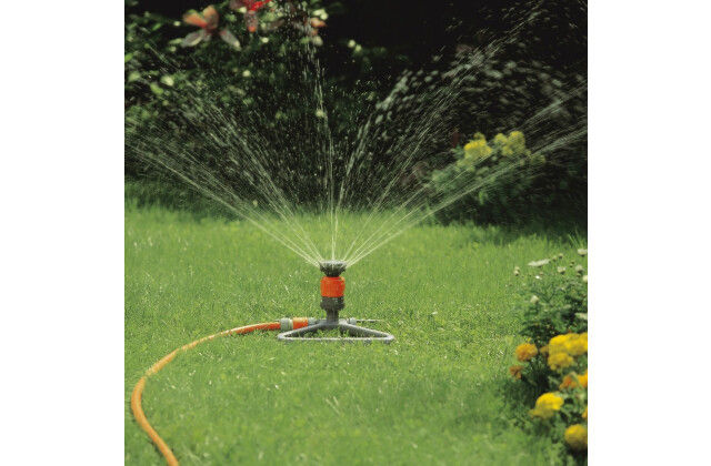 Дощувач Gardena зі штативом Vario (1948-29) обладнаний унікальною турбіною обертається дії, яка гарантує точність і рівномірність поливального процесу. Виробником передбачена спеціальна піку і фільтр сітчастого типу, що забезпечують високу стійкість і тривалість терміну служби. Вже згадана модель може з легкістю підключатися в єдиний ланцюг з подібними дощувателями для охоплення більшої площі. Прилад рекомендується використовувати для ділянок доя 225 кв.м, дальність зрошення 8,5 метрів. Допускається вибір поливального сектора з кроком 45 °. Наявність турбінного колеса передбачає рівномірність і акуратність поливу, який до того ж може зручно регулюватися.