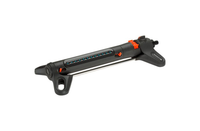 Дождеватель осцилирующий Gardena AquaZoom S идеально подойдет для равномерного полива и орошения небольших прямоугольных и квадратных участков Вашего сада или газона, а так же огорода площадью от 9 м² до 150 м² при условии соответствующего давления воды. Дальность регулируется от 3 до 15 метров и ширина в пределах от 3 до 10 метров. Дождеватели осцилирующии Gardena AquaZoom S отличаются запорным краном на корпусе который регулирует поток воды, а так же своей надежностью и качеством полива прямоугольных и квадратных участков без образования луж, бесступенчатой регулировкой дальности и ширины полива. На входе, где идет подключения через штуцер уже установлено фильтр из нержавеющей стали, сеточный для мелкой очистки, но если у Вас вода слабозагрязненная и берется из пруда или другого источника, рекомендуется установить дополнительно фильтр для предотвращения сильного загрязнения форсунок и выхода из строя механизма качения. Ширина полива в данном осцилирующем дождевателя Gardena 18710-20 так же регулируется при помощи двух зависимых друг от друга рычагов настройки положения форсунок, находятся они на корпусе возле форсунок. При максимальном давлении ширина полива может составлять от 3 до 10 метров, но эти показатели так же могут быть меньше и настроенные под Ваши требования ведь зависят от давления подачи воды и регулировки количества подачи воды.