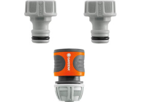 Набір приєднання Gardena (18286-20.) Включає в себе коннектор для шлангів діаметром 13 - 15 мм (1/2 "- 5/8") і два штуцери з внутрішнім різьбленням 3/4 "для підключення до водопроводу. При цьому не потрібно ніяких додаткових інструментов.Коннектор має сучасний дизайн і нову запатентовану форму затискної гайки, яка забезпечує ідеальне поєднання коннектора і шланга. Поверхня коннектора виконана з м'якого рифленого пластика і дозволяє зручно і надійно утримувати коннектор Гардена в руці. конектор Gardena оснащений гумовим кільцем, яке забезпечує захист від пошкоджень.