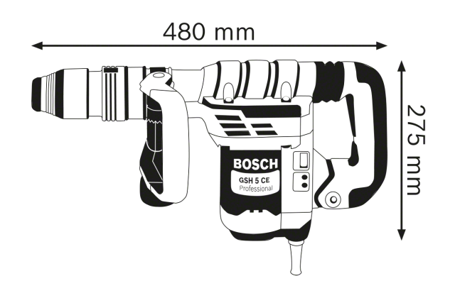 Відбійний молоток BOSCH GSH 5 CE Professional - потужний важкий L-подібний відбійний молоток з патроном SDS-Max зі зниженими на 40% вібраційними коливаннями під час роботи. Модель відбійного молотка BOSCH GSH 5 CE Professional має високу продуктивність довбання, завдяки високій енергії удару. Корпус з металу забезпечує відбійних молотків BOSCH GSH 5 CE Professional довгий термін експлуатації. Установка долота в 12 положеннях забезпечує комфортну роботу за допомогою відбійного молотка BOSCH GSH 5 CE Professional.
