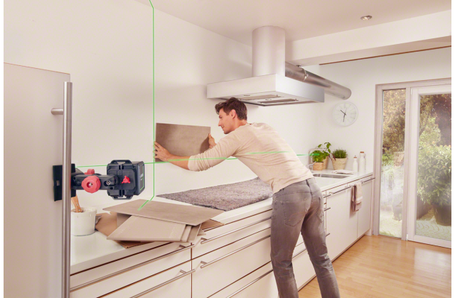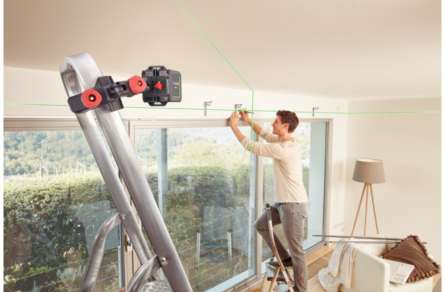 - Розширений робочий діапазон до 12 м завдяки краще видимим зеленим лазерним лініям