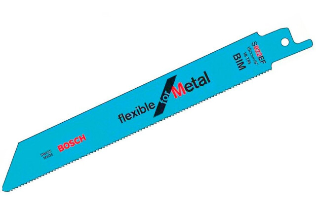 Сабельное пильное полотно S 922 EF Flexible for Metal оптимизировано для широкого спектра работ по металлу. Мелкий шаг зубьев позволяет пилить материалы распространенной толщины. Биметаллическое (BIM) полотно рассчитано на длительный срок службы при резке стали средней прочности. Кроме того, мелкий шаг зубьев (1,4 мм) позволяет полотну пилить трубы и профили толщиной 1,5–4 мм. Стандартная длина (150 мм) полотна обеспечивает глубину реза до 100 мм. Для сабельных пил с универсальной системой хвостовика 1/2 дюйм