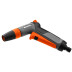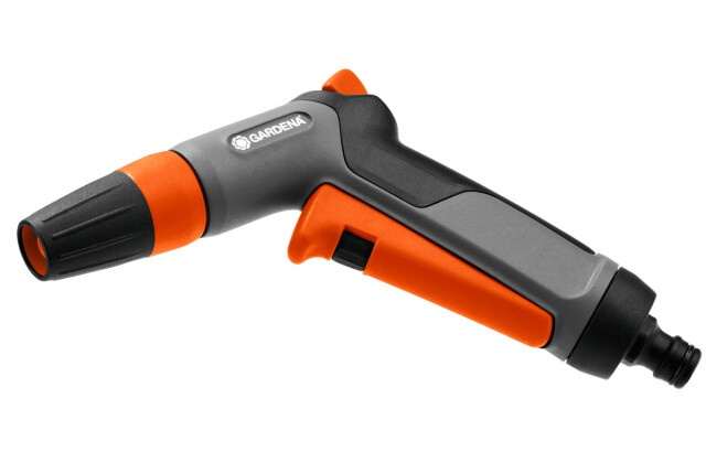 Регулируемый пистолет-наконечник GARDENA Classic - идеальный инструмент для полива: благодаря предусмотренным элементам из мягкого пластика небольшой компактный инструмент удобно держать в руке. Возможно плавное регулирование напора воды. Сильная струя используется для чистки, а мелкодисперсного распыления предназначенное для полива уязвимых растений. Для длительного непрерывного полива предусмотрен механизм фиксации курка, благодаря которому руки не чувствуют усталости.
