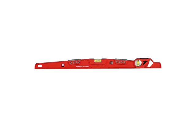 Уровень изготовлен из литого алюминия и выдерживает механические повреждения, дополнен двумя колбами из полиакрила.
