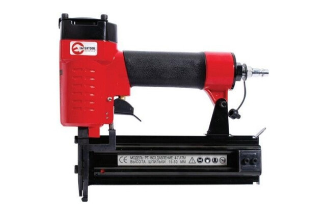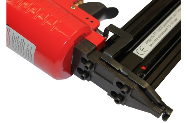 РТ-1603 — пневматический степлер под гвозди, который можно использовать в различных видах строительных и отделочных работ. РТ-1603 рассчитан на работу с гвоздями высотой от 16 до 50 мм. Оснащен прорезиненной рукояткой, которая не утомляет руку и способствует длительной и качественной работе с аппаратом. Одними из его главных преимуществ является механизм быстрой загрузки скоб и возможность регулировки направления выброса воздуха. Данный степлер имеет удобный, эргономичный дизайн — работать с ним эффективно, и одновременно с этим, комфортно.