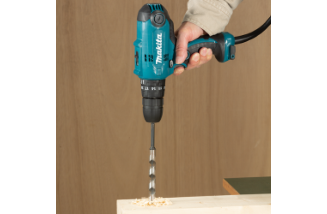 Makita HP0300 оснащен функцией реверса, посредством которой инструмент может и закручивать саморезы, ивыкручивать их. Плюс ко всему, при заклинивании сверла реверс помогает его безопасно извлечь, после чего работа может быть продолжена.
