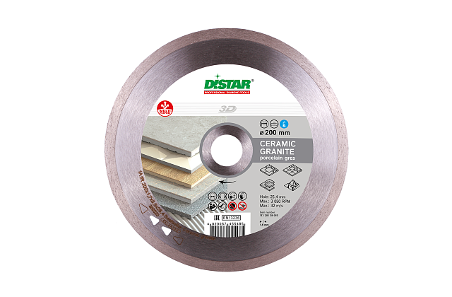 Алмазный диск DISTAR 1A1R BESTSELLER CERAMIC GRANITE является представителем класса 3D, среди сегмента недорогих инструментов для обработки плитки и керамогранита под средством мокрого способа. Прекрасно проявил себя в работе с настенной плиткой, всеми видами керамики и керамогранита, мрамором.