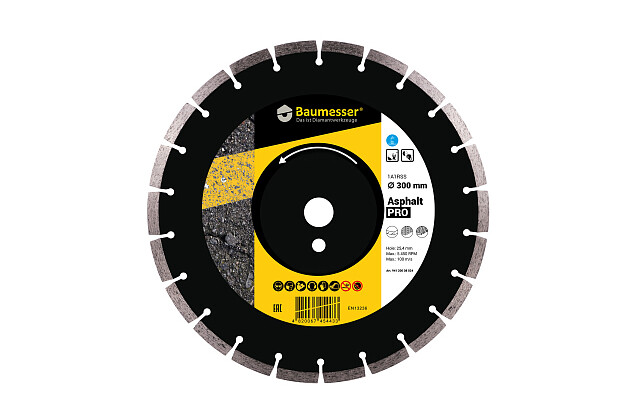 Алмазный диск Baumesser Asphalt Pro – лучший инструмент для работы с асфальтовым покрытием и схожими абразивными материалами. Диск изготовлен по специальной технологии HIT для максимально продуктивной работы с асфальтом и другими материалами такого типа.