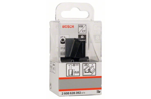 Твердосплавная пазовая фреза с хвостовиком 8 мм диаметром 25 мм, рабочей длиной 19,6 мм и общей — 51 мм — рабочая насадка для вертикальных фрезерных машин.