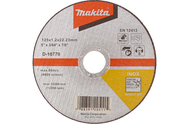 Отрезной круг по нержавейке плоский Makita 125 мм (D-18770):