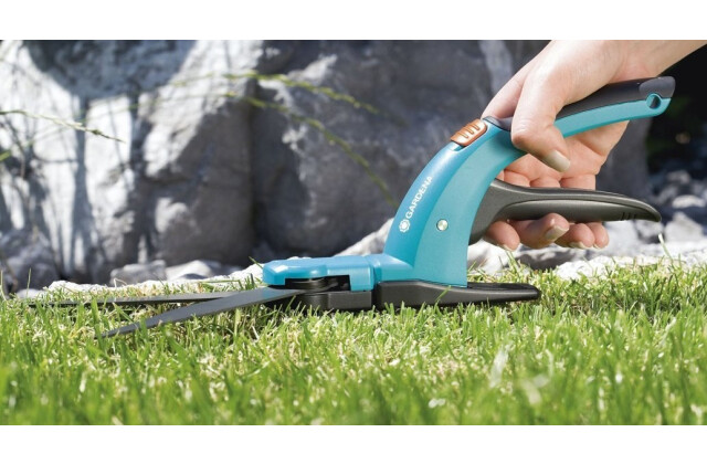 Рукоятка эргономичной формы с мягкими пластиковыми элементами облегчает процесс стрижки. Волнообразные лезвия с особым покрытием от налипания гарантируют равномерность и точность. Специальная ножевая опора позволяет получить ровный и чистый срез по всей длине лезвия. Направляющие обеспечивают легкость в управлении и помогают поддерживать постоянную высоту среза. Удобный фиксатор, положение которого меняется одной рукой, дает возможность легко и быстро заблокировать ножницы.